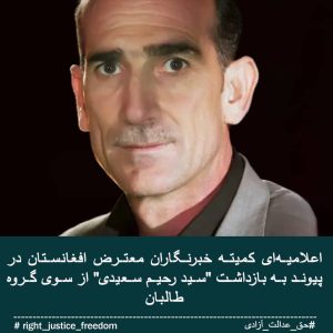 کمیته خبرنگاران معترض افغانستان بازداشت سید رحیم سعیدی، کارگردان و تهیه کننده برنامه های تلویزیونی از سوی گروه طالبان را...